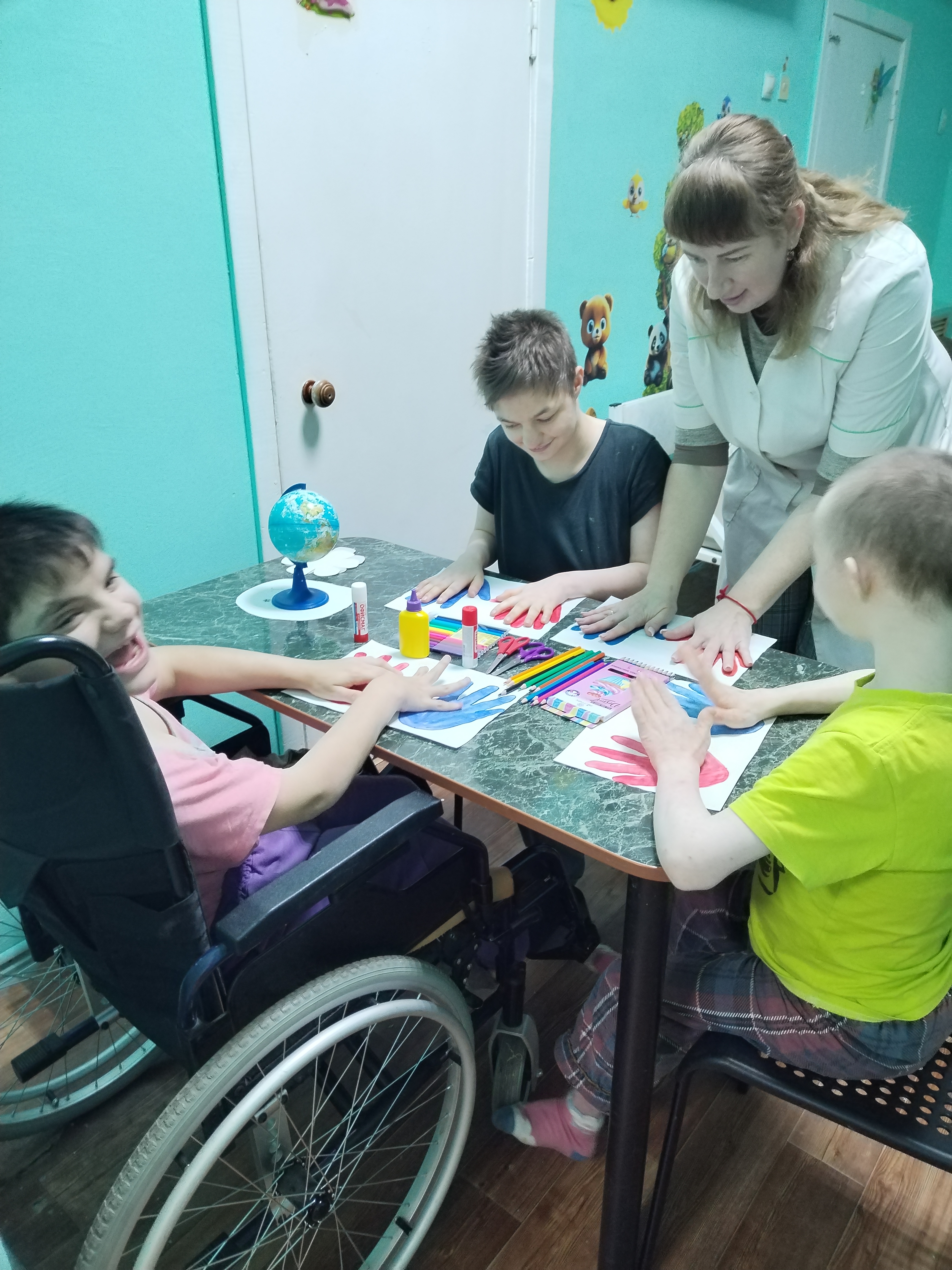 В заключение занятия дети обвели свои ладошки и сложили в виде солнышка.