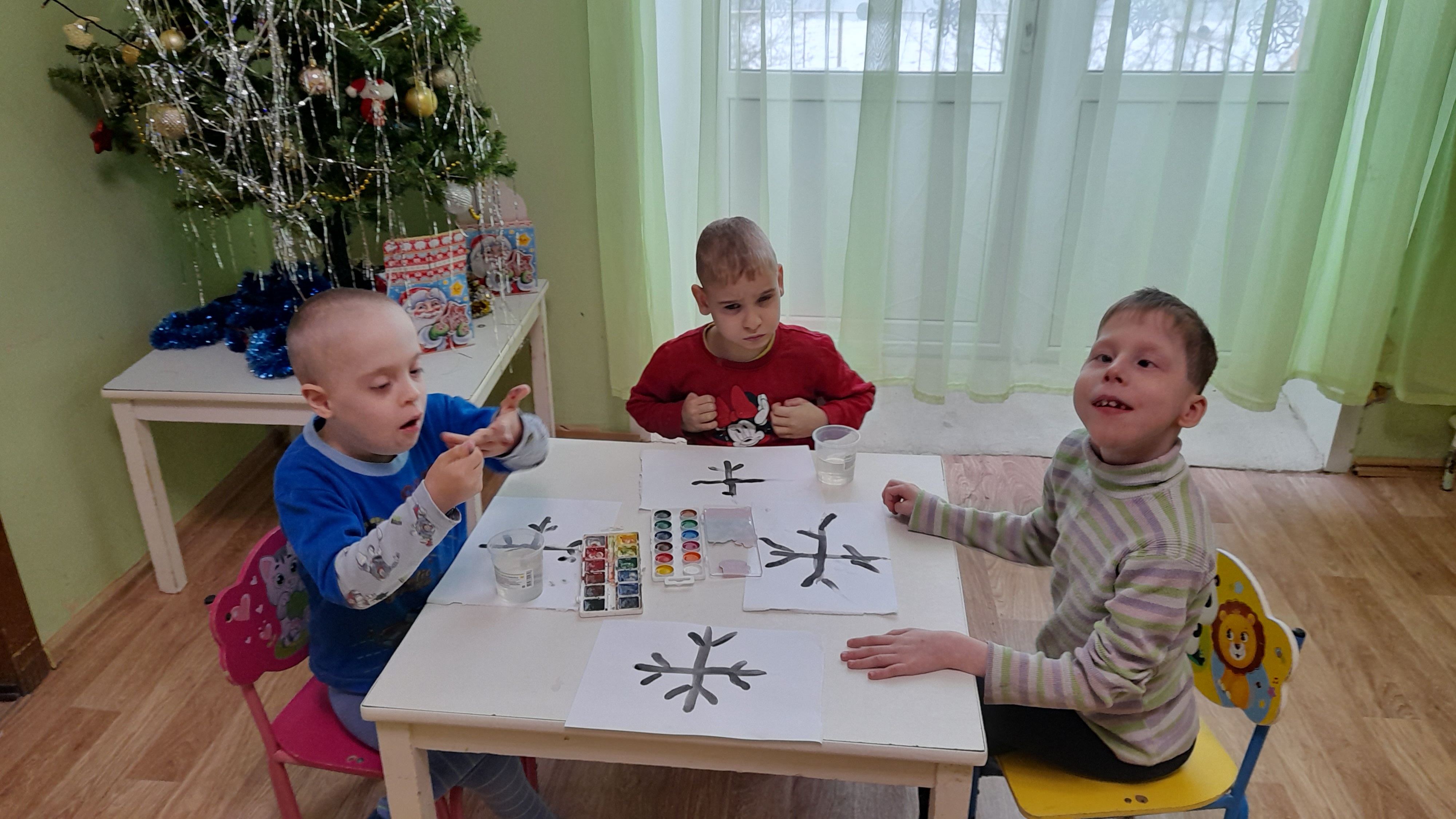 Ребятишки с удовольствием рисовали пальчиками новогодние снежинки, которые получились у всех разные.