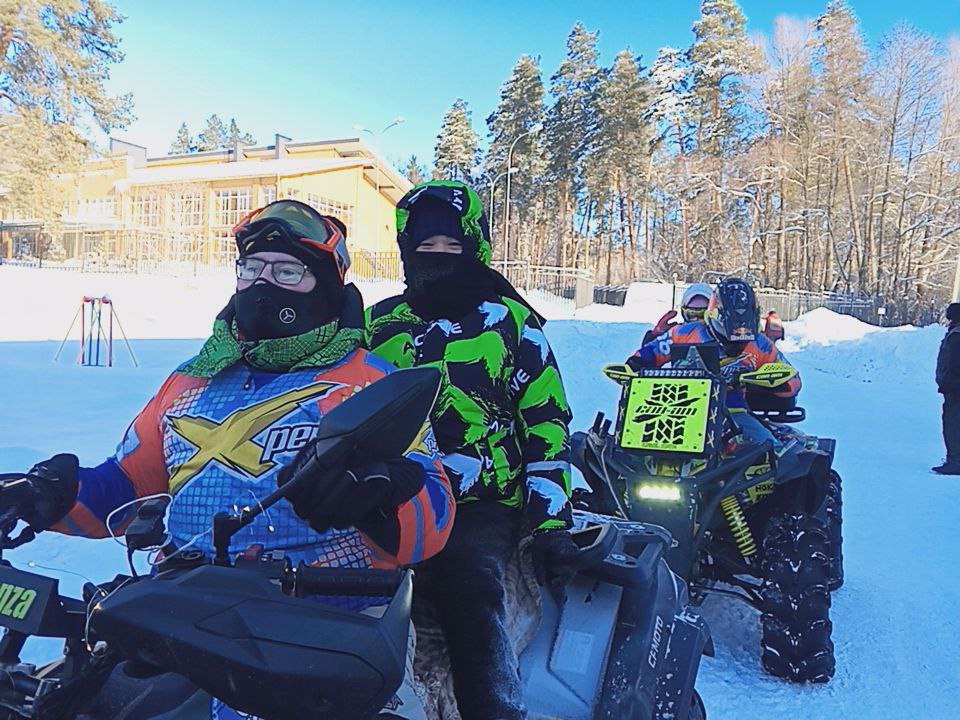 Встреча с друзьями началась с экстремальных «покатушек», ребят прокатили на квадроциклах по заснеженному лесу п. Кичкилейка. Не смотря на довольно морозную погоду, приятным тёплым ощущениям от катания не было предела.