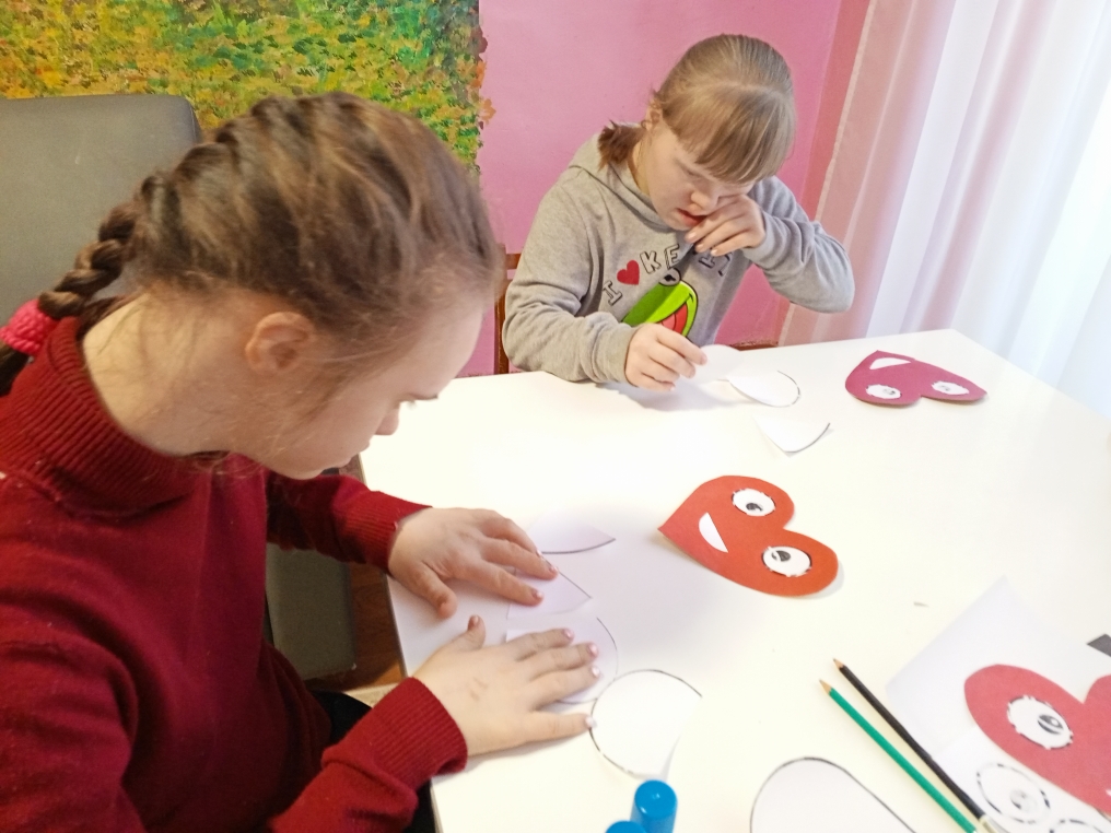 Воспитанники с удовольствием участвовали в конкурсах: «Моя половинка», «собери Сердце»; отгадывали загадки, делали Валентинки.