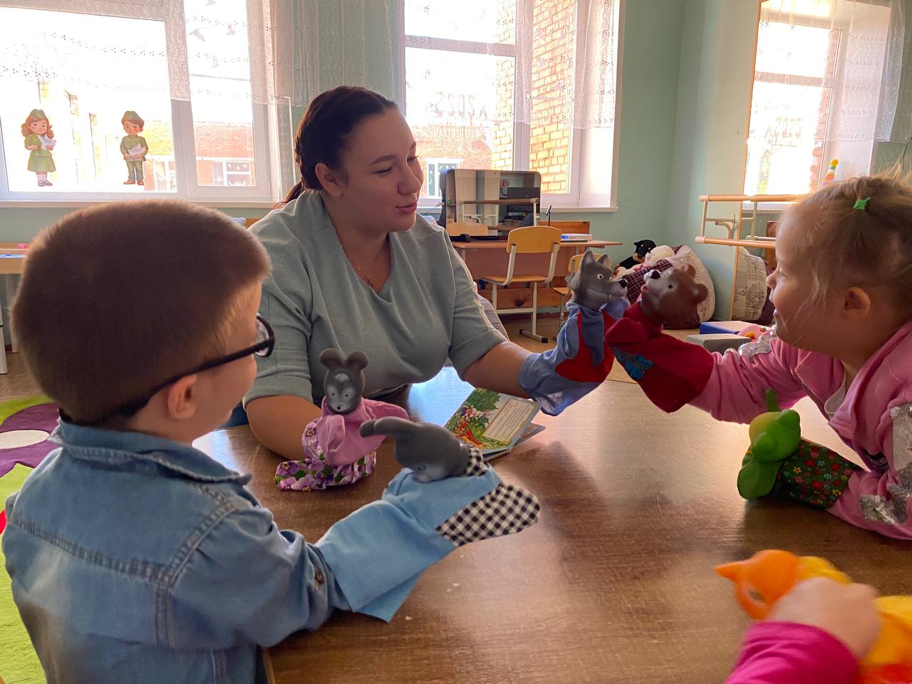 Анастасия Сергеевна умело направляет обсуждение, задавая вопросы, которые помогают детям идентифицироваться с героями, проецировать на них свои эмоции и находить конструктивные способы решения проблем. Кроме того, кукольный театр делает процесс более наглядным и увлекательным, что особенно важно для детей, которым трудно концентрировать внимание или выражать свои мысли словами.