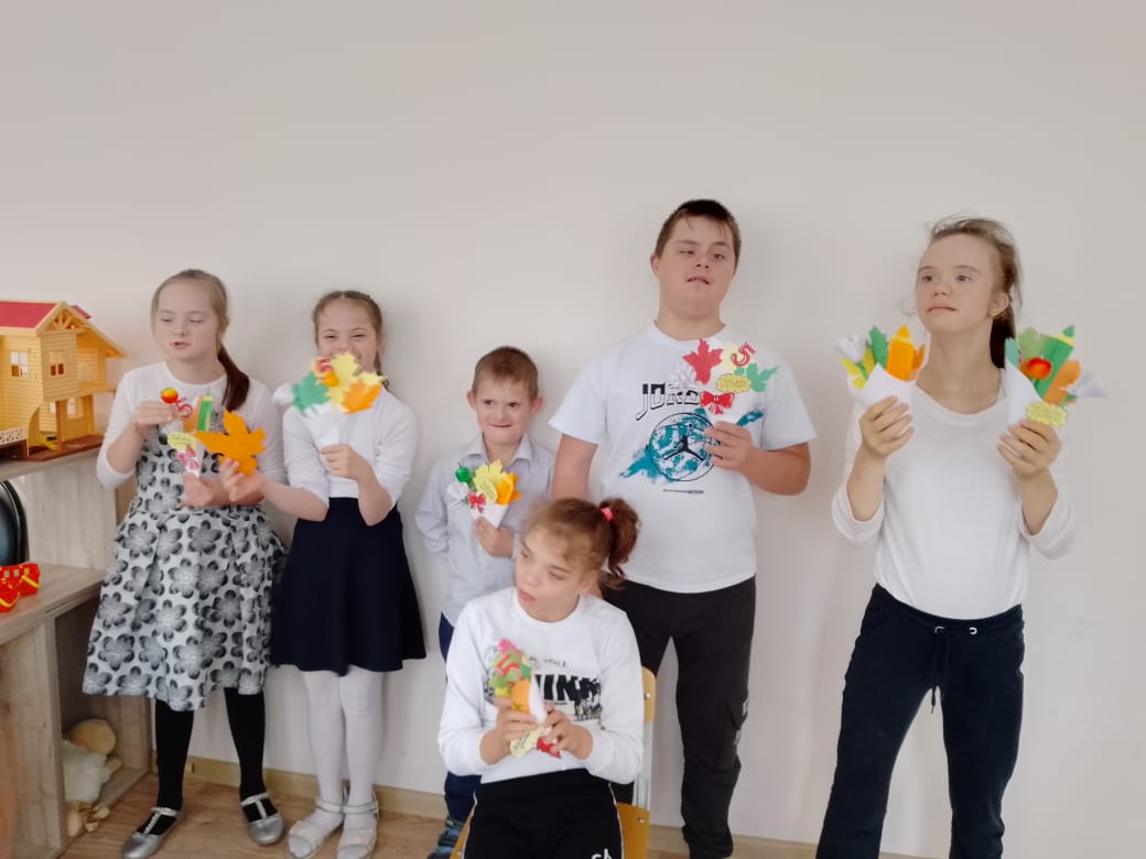 Мастер-класс «Любимому учителю» прошел с учениками разных классов детского дома. Для своих любимых учителей ребята делали поздравительную поделку, которую подарят в день профессионального праздника педагогам. Сначала дети учились складывать кулёк, к которому затем прикрепили осенние листочки, отличную отметку «5», добавили самодельный карандаш, цветочек и завершили поделку надписью «любимому учителю», украсив бантиком. У всех учеников получилась своя творческая яркая работа.