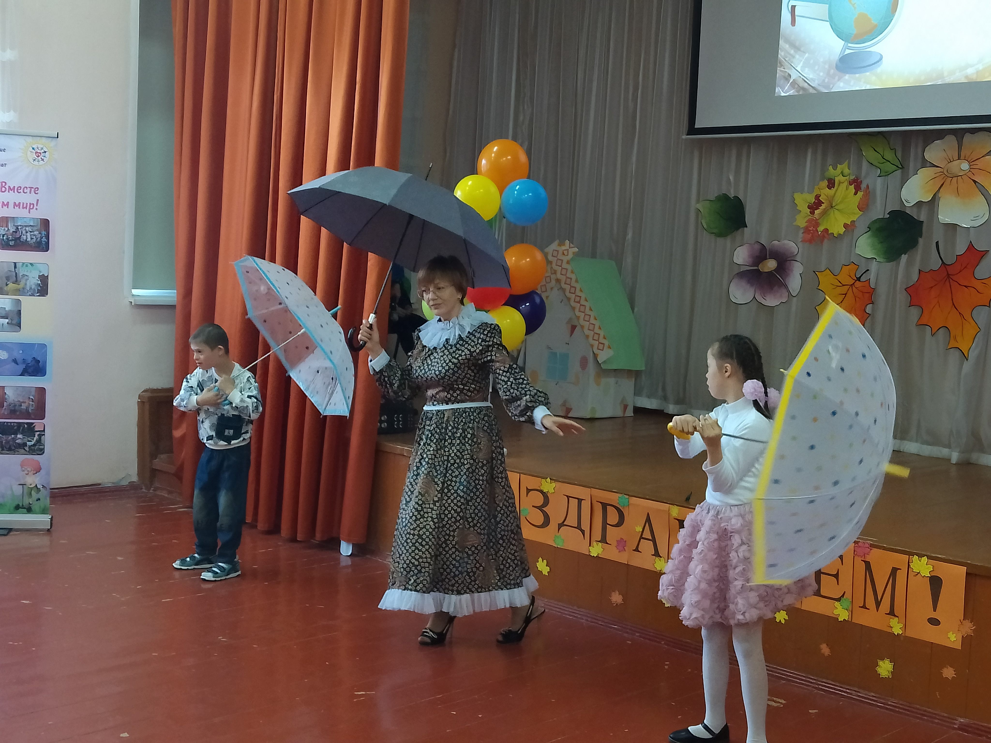 Накануне праздника Дня учителя в филиале школы -интерната прошёл замечательный концерт, где воспитанники спели песни и сказали много добрых слов в адрес своих наставников- педагогов! Начала концерт всем известная няня «Мэри Поппинс», которая порадовала детей и взрослых своим элегантным танцем совместно с учениками младших классов, также провела шуточное интервью и сумела поднять настроение всем присутствующим.